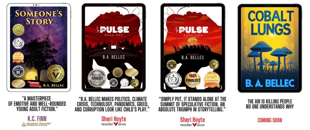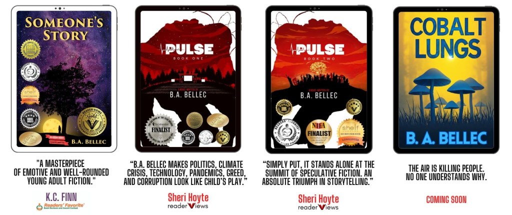 Bryan “B.A.” Bellec is the award-winning author of three novels with more coming in the next few years. He also makes music themed around his novels. If you want to hear the music, please check out his YouTube channel, and don’t forget to read the video descriptions for some of the connection points and inspiration between the songs and the books: